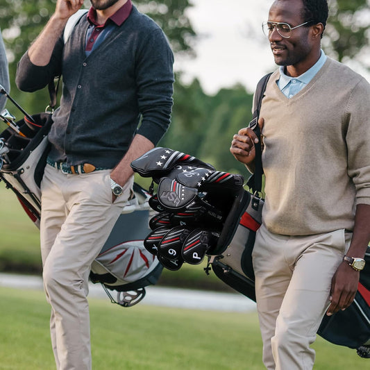 Golf Builder Black Leather USA Golf Club Iron Wedge Head Covers Fit All Brands