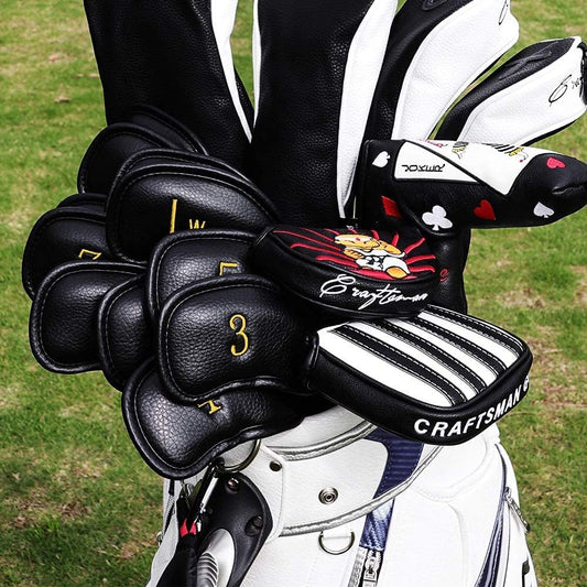 CRAFTSMAN GOLF 12pcs or 1pc Thick Synthetic Leather Golf Iron Head Covers Set Headcover Fit All Brands Callaway Ping Taylormade Cobra Etc. Also Custom Name