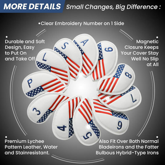 FINGER TEN Golf Club Covers for Irons Magnetic Value 11 Pack, Synthetic Leather Deluxe Head Cover Set Headcovers for Irons Fit Main Iron Clubs