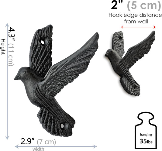 Ambipolar 5-Pack Bird Flying Style Coat Hooks, Vintage Black Hooks for Coats, Hats, and More, Sturdy Cast Iron Construction, Rustic Farmhouse Theme, Easy Installation Versatile and Durable