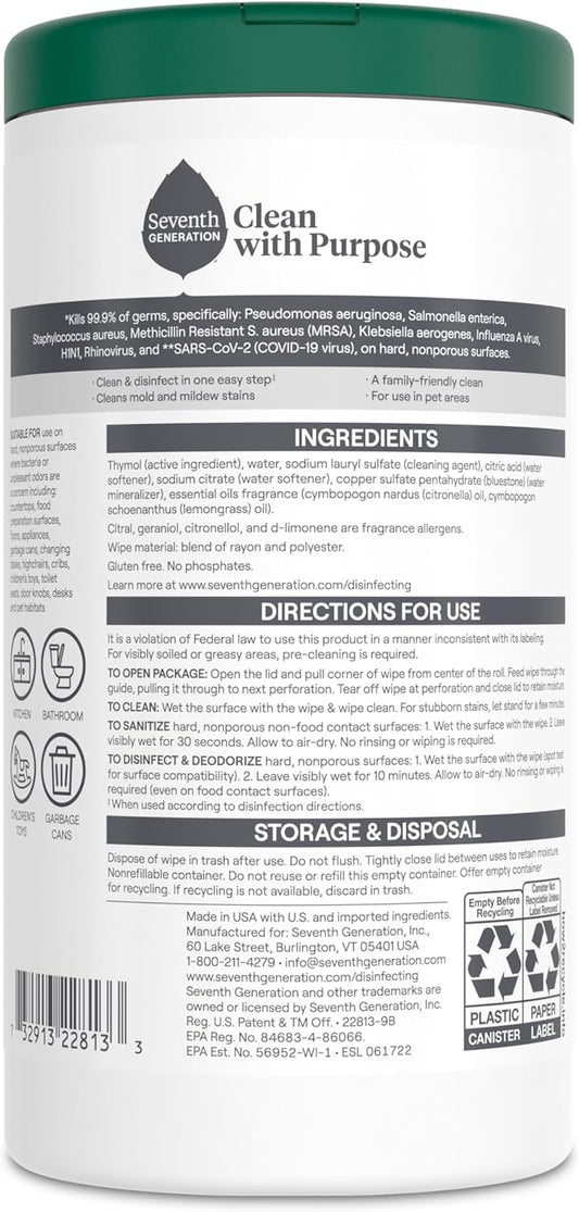Seventh Generation Multi-Surface Disinfecting Wipes, Lemongrass Citrus, 8.1 oz, 35 Ct (2 pack)