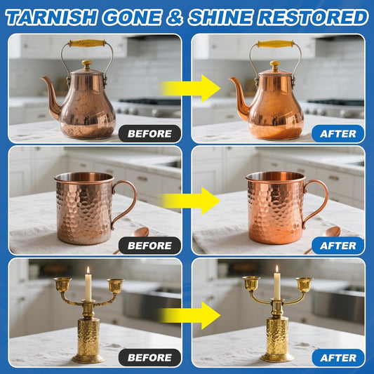 Brass Polish Copper Cream Cleaner Kit - Instant Polishing Cream And Protective Tarnish Removal, Metal Cleaner And Brightener For Antiques, Music Instruments, Copper Kettle And Sinks