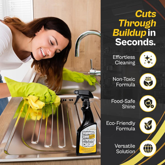FLITZ Stainless Steel & Chrome Clean - 8oz Bottle, USA-Made Stainless Steel Cleaner Spray for Appliances - Grill, Fridge, Sink Stain Remover - Also Works on Aluminum Surfaces (1 Pack)
