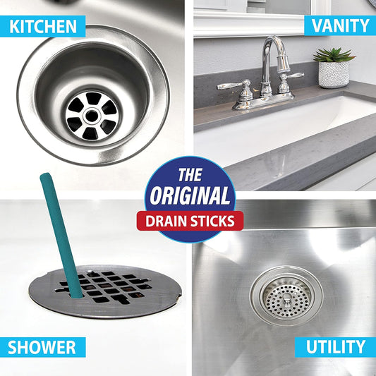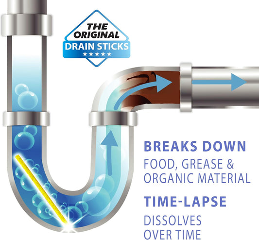 SANI 360° Sani Sticks Drain Cleaner and Deodorizer, 24 Count, Unscented Enzyme Pipe Cleaners, Eliminate Odors, Prevent Clogged Drains, Safe for Sinks, Bathtub Drains, Septic Tanks