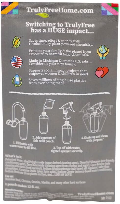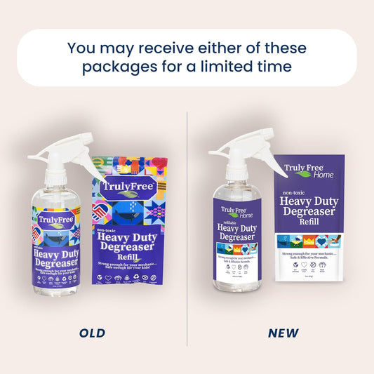 Truly Free Heavy Duty Degreaser- Grease Remover & Grime Cleaner for Kitchen, Automotive & More, Household Cleaning Supplies, Fragrance-Free, Includes 16 oz Reusable Empty Bottle & 2 Refills (4 oz)