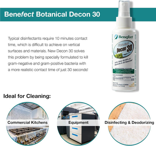 Benefect Botanical Decon 30 Disinfectant Cleaner, 4 oz. Spray Bottle, Light Lemon & Thyme Scent, Hospital Grade Disinfectant, Kills Over 99.99% of Germs, Safe for Food-Contact Surfaces