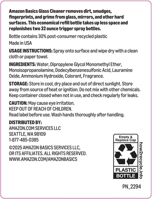 Amazon Basics Glass Cleaner Refill 67.6 Fl Oz, Pack of 1