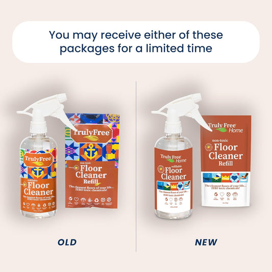Truly Free Floor Cleaner Kit - Plant-Based Mopping Solution (16oz Reusable Empty Bottle + Two Pouches, 3oz ea.) - DIY All-Surface Cleaner for Hardwood, Tile, Wood & Concrete