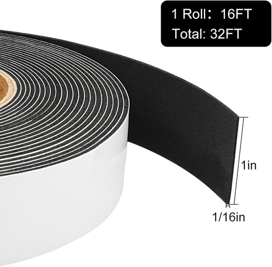 2 Rolls Weather Stripping Door Seal, 1''W x 1/16'' T Foam Tape Single Sided, Adhesive Closed Cell Weather Strip (Total 32 Feet Long)…