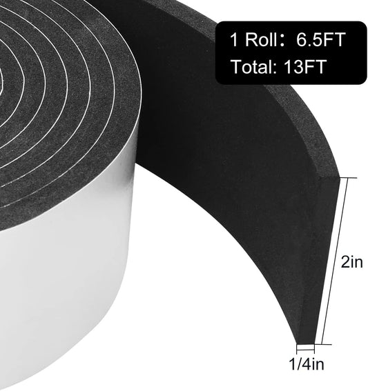 2 Rolls Seal Foam Tape, 2'' W x 1/4'' T Weather Stripping Close Cell Door Sealer, Single Sided Weather Strip, Total 13 Feet Long…