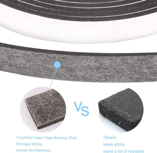 YIJUHOU Weather Stripping Door Seal Window Air Conditoner Insulation Foam Seal Tape Black Open Cell Door Seal Strip (1IN*1/2IN*13FT)