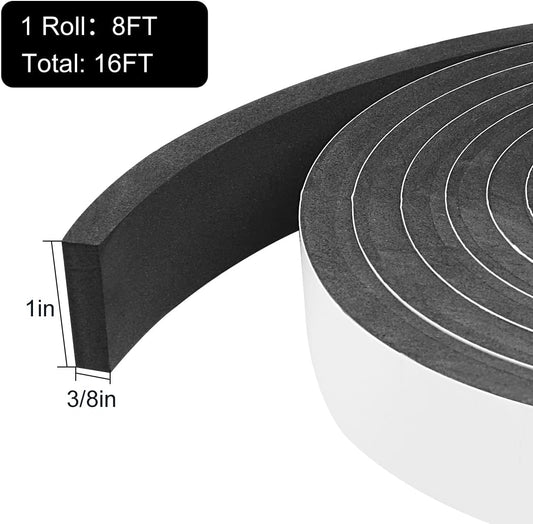 2 Rolls 1 Inch W 3/8 Inch T Weather Stripping Air Conditioner Open Cell Foam Seal Tape, Window Insulation High Resilience Seal Strip for Doors Window,Total 16FT
