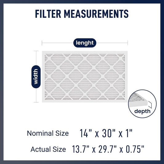 14x30x1 MERV 13 Air Filters, 2-Pack – Actual Size 13.7" x 29.7" x 0.75" – High-Efficiency Pleated Filter for HVAC, AC & Furnace Systems – Advanced Filtration for Cleaner Air