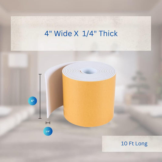 High Density Foam Weather Stripping Door Seal Strip Insulation Tape Roll for Insulating Door Frame, Window, Air Conditioner | Self Adhesive Sealing Weatherstrip (4 in x 1/4 in x 10 Ft, White)