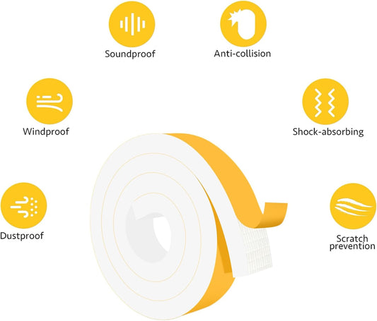 Strong Adhesive Weather Stripping for Doors and Windows, High Density Door Seal, SoundProof Weatherproof Foam Insulation Tape, Windproof, Anti-Scratch Weatherstrip (3/4 in x 1/2 in x 13Ft)