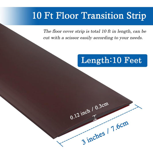 Floor Transition Strip Self Adhesive Floor Cover Strips Laminate 3" Wide Vinyl Flat Divider Transitions (7.5cm, 10Ft, Brown)