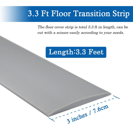Floor Transition Strip Self Adhesive Floor Cover Strips Laminate 3" Wide Vinyl Flat Divider Transitions (7.5cm, 3.3Ft, Gray)
