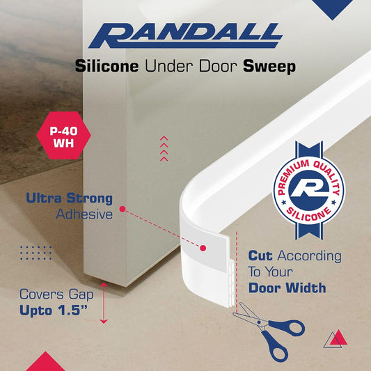 Adhesive Backed Door Draft Stopper – Silicone Under Door Sweep for Interior & Exterior Doors, Noise & Air Insulation, Self Stick Weather Stripping Door Seal, 2" W x 39" L (White) by Randall Mfg