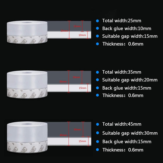 Silicone Seal Weather Stripping Tape 16.5 Ft Strip Bottom Draft Insulation Stopper Tape Weatherproof Soundproof for Door or Window Bathroom Shower Glass Gaps(35mm*5m)