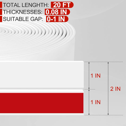 MYFAMIREA Door Weather Stripping 2IN (W) x 20FT (L) Door Draft Stopper Seal Tape Silicone Seal Strip Self Adhesive Shower Sweep Insulation Tape Side Bottom Strip for Sliding Glass Window Gap, White