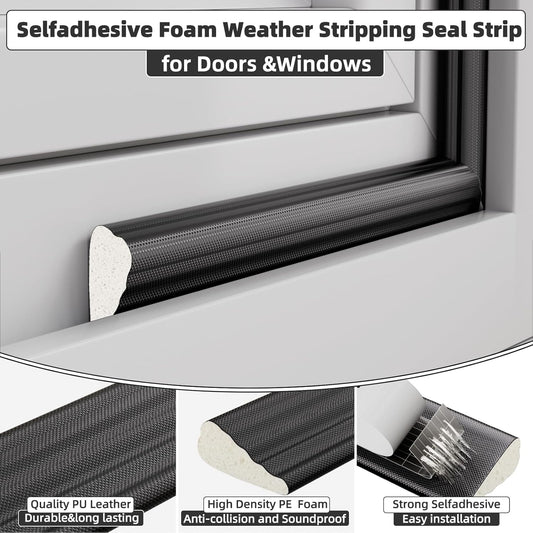 9.8 Ft Weather Stripping Seal Strip for Doors/Windows,Soundproofing Window Insulation Draft Stopper for Winter, Selfadhesive Foam Weather Strip for Door Frame,Door Gap Filler Noise Blocker(Black)