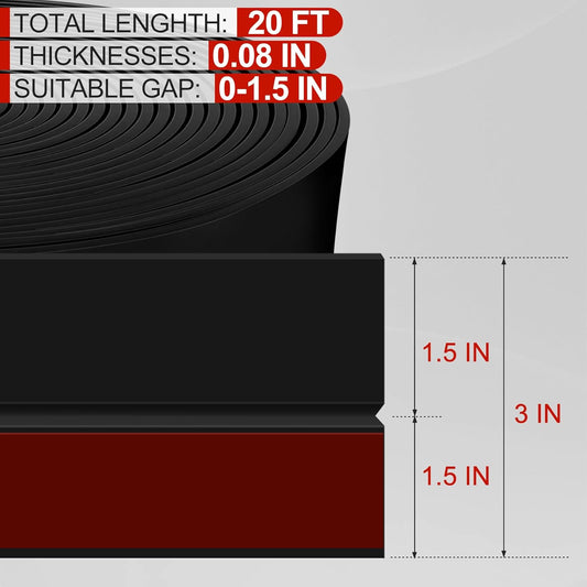 MYFAMIREA Door Weather Stripping 3IN (W) x 20FT (L) Door Draft Stopper Seal Tape Silicone Seal Strip Self Adhesive Shower Sweep Insulation Tape Side Bottom Strip for Sliding Glass Window Gap, Black