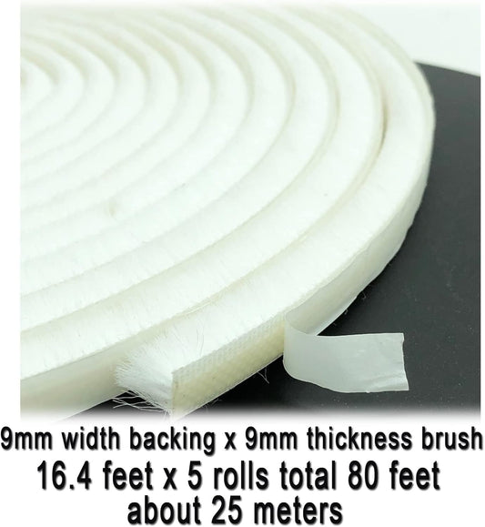 80 Ft White Weather Stripping Brush for Sliding Window/Door Frame, House Soundproofing Felt Self Adhesive Weather Strip Seal Strip Sealer Tape (11/32 Backing x 11/32 Brush inch)