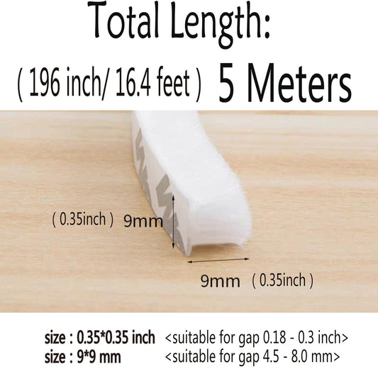 196" Wedge Weather Stripping Door Seal Strip for Door Frame & Window,Self Adhesive Window Insulation Draft Stopper Seal for Winter,Gray Foam Door Gap Filler for Soundproofing Light Blocker,White
