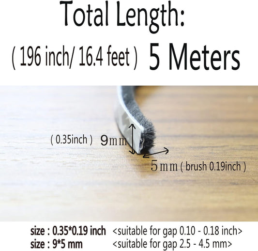 Self-Adhesive Pile Weather Stripping Seal for Sliding Windows and Door Frames, 16.5ft x 11/32 inch, Grey