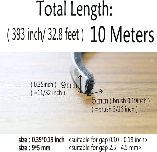 Weather Stripping Brush for Sliding Windows/Doors Frame Side,Pile Self Adhesive Weatherstrip Seal Strip Sealer Draft Stoppers (32ft x11/32 Backing x 9/16 Brush inch, Grey)