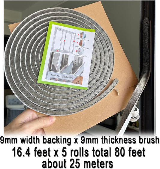 Weather Stripping Brush for Sliding Windows/Doors Frame Side,Pile Self Adhesive Weatherstrip Seal Strip Sealer Draft Stoppers (80ft x11/32 Backing x 11/32 Brush inch, Black)
