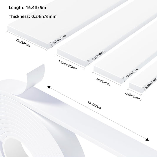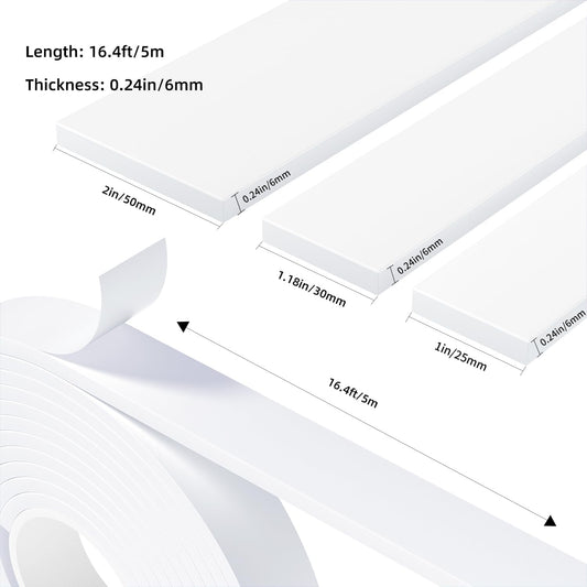 Weather Stripping Door Seal White,2Inch Wide X 1/4 Inch Thick,Air Conditioner Window Seal,Self Adhesive Foam Tape High Density Foam Sealing Strip,Soundproof Foam Tape Roll,Total 16.4 Feet Long