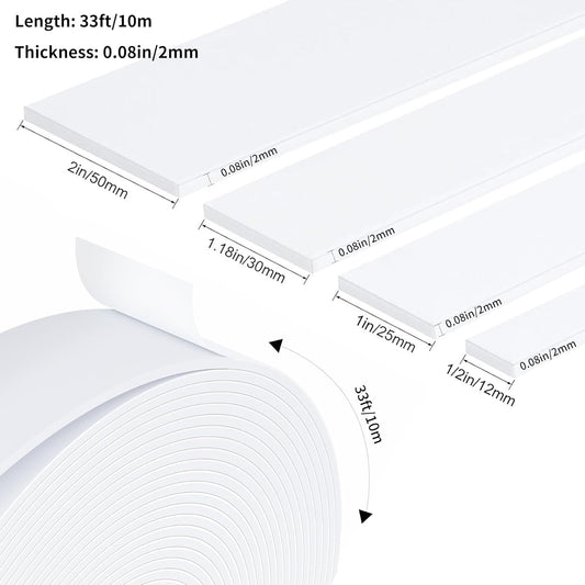 Weather Stripping Door Seal White,Self Adhesive Foam Tape High Density Foam Sealing Strip,Air Conditioner Window Seal,Soundproof Foam Tape Roll(1/2" W X 1/13" T X 33' L)
