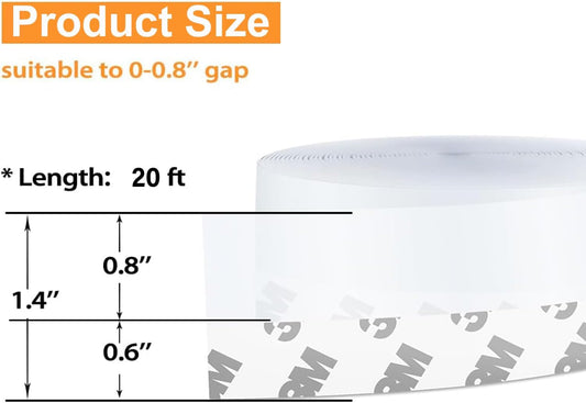 Draft Seal Tape for Doors and Windows 3 in x 20 Ft Silicone Weather Stripping Extra Thick 2mm Door Seal Strip with Strong Adhesive Draft Insulation Stopper Side Seal - Clear