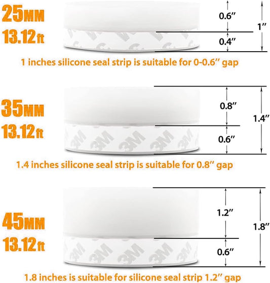 Draft Seal Tape for Doors and Windows 3 in x 20 Ft Silicone Weather Stripping Extra Thick 2mm Door Seal Strip with Strong Adhesive Draft Insulation Stopper Side Seal - White