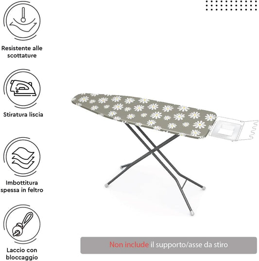Encasa XO Ironing Board Cover and Pad 54"x15" - Thick 3mm Felt Padding, Drawstring Tightening & Lock, Easy Fit, Scorch & Stain Resistant, Fits Standard Large Ironing Board - Daisy Grey