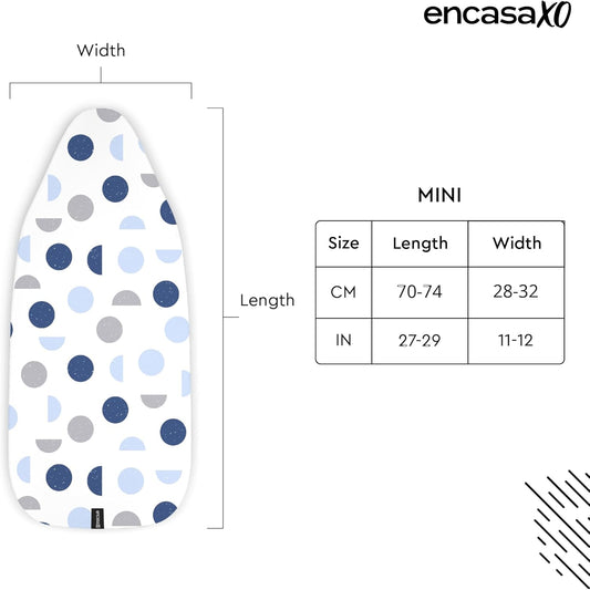 Encasa XO Ironing Board Cover and Pad 28"x12" - Thick 3mm Felt Padding, Drawstring Tightening & Lock, Easy Fit, Scorch & Stain Resistant, Fits Mini Ironing Board - Blue Moon