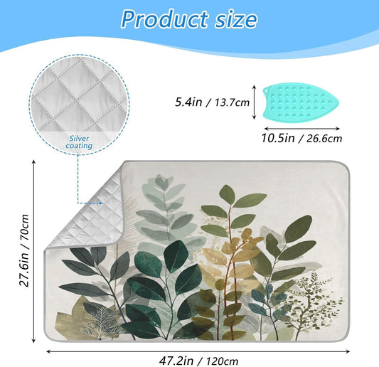 Ironing Mat Portable Ironing Pad Ironing Blanket for Table Top Heat Resistance Double-Side Using Travel Large 47.2 x 27.6 Inch Foldable Lightweight Beige Boho Style Leaves