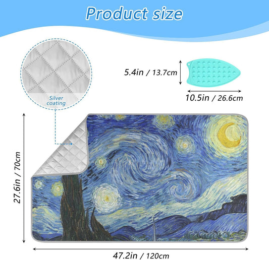 Ironing Mat Thickened Ironing Blanket Travel Portable Double-Side Using Ironing Pad Travel Isolate Heat Pad Cover for Washer Dryer Table Top Countertop (27.6x47.2in) Vangogh Starry Night