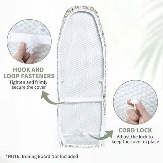 Ironing Board Cover and Pad, Standard Size 15 x 54, Thick Padding with Elasticized Edges, Heat Reflective with Hook and Loop Fasteners, 3 Layers Iron Board Cover (Green Leaf)