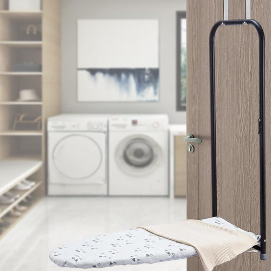 Seiritex Over The Door Ironing Board Cover 14 x 42 inch, Thick Padding and Heat Reflective with Hook and Loop Fasteners, 3 Layers Iron Board Cover (White)