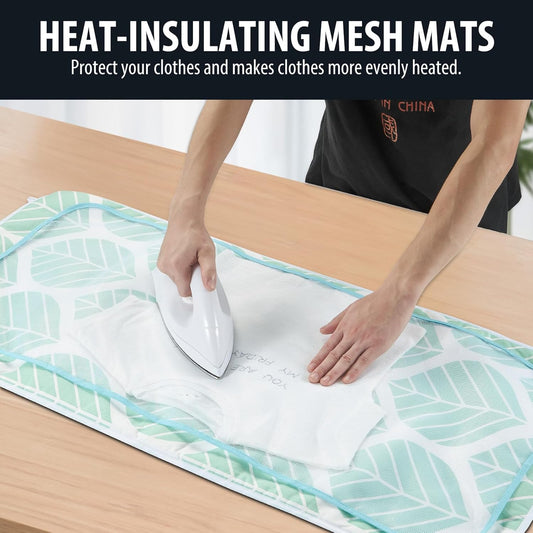 Seiritex Ironing Mat, Portable Ironing Pad 39.4 x 18.9 inch Table Top Iron Board 5 in 1 Travel Iron Blanket for Washer, Dryer, Counter top, Green Leaf