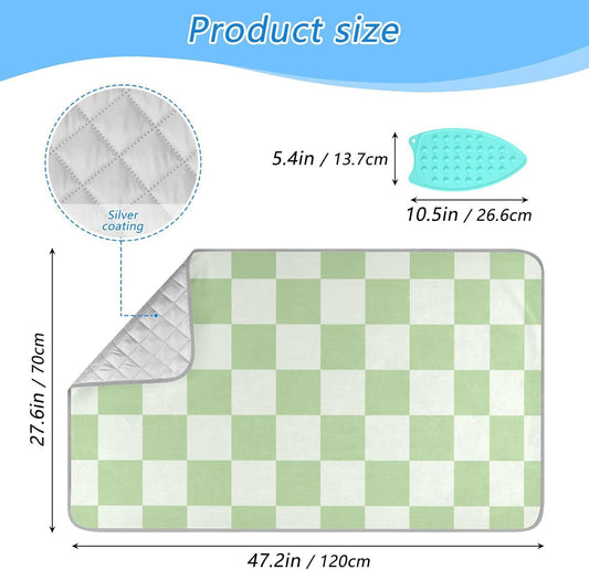 Checkered Mint Green White Plaid Ironing Mat for Table top Portable Ironing Pad Blanket for Washer Dryer Countertop Travel