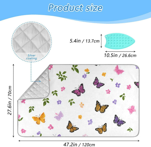 Colorful Butterfly Ironing Mat for Table top Portable Ironing Pad Blanket for Washer Dryer Countertop Travel