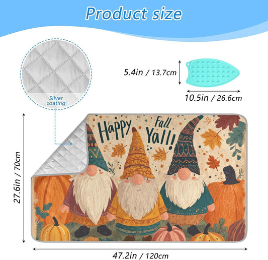 Cartoon Pumpkin Gnomes Fall Ironing Mat for Table top Portable Ironing Pad Blanket for Washer Dryer Countertop Travel