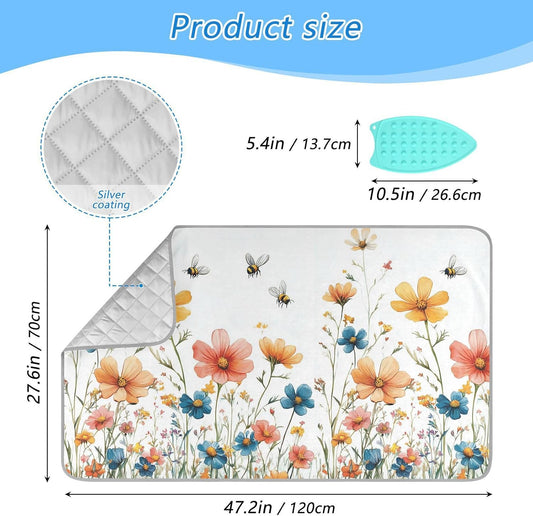 Yellow Wildflower Bees White Ironing Mat for Table top Portable Ironing Pad Blanket for Washer Dryer Countertop Travel