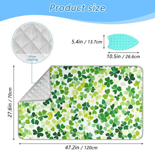 Bright Green Clover St. Patrick Ironing Mat for Table top Portable Ironing Pad Blanket for Washer Dryer Countertop Travel