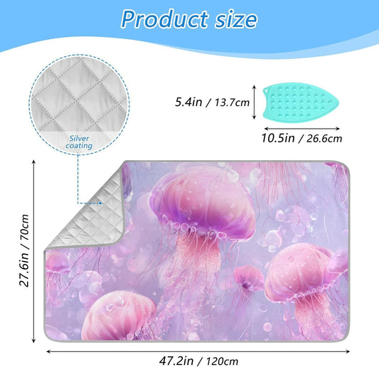 Pink Cute Jellyfishes and Bubbles Ironing Mat for Table top Portable Ironing Pad Blanket for Washer Dryer Countertop Travel