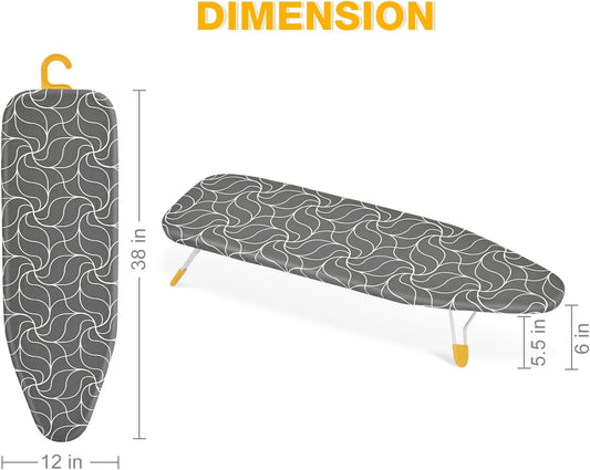 APEXCHASER Tabletop Ironing Board, Folding Legs Iron Board with Mesh Metal Base,Space Saving Portable Small Ironing Board with Non-Slip Feet,12x38 Yellow