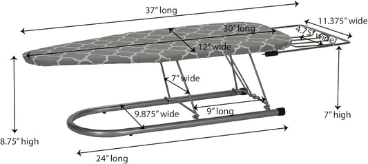 Household Essentials Tabletop Ironing Board, Compact Ironing Board with Iron Rest, Includes Door Hang, Perfect for Dorms and Small Spaces, 12 x 30", Silver
